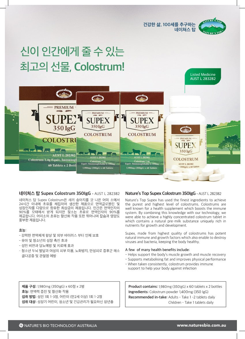 [Nature's Top] SUPEX Premium Colostrum 350 IgG *60Tabs X 2 bottles