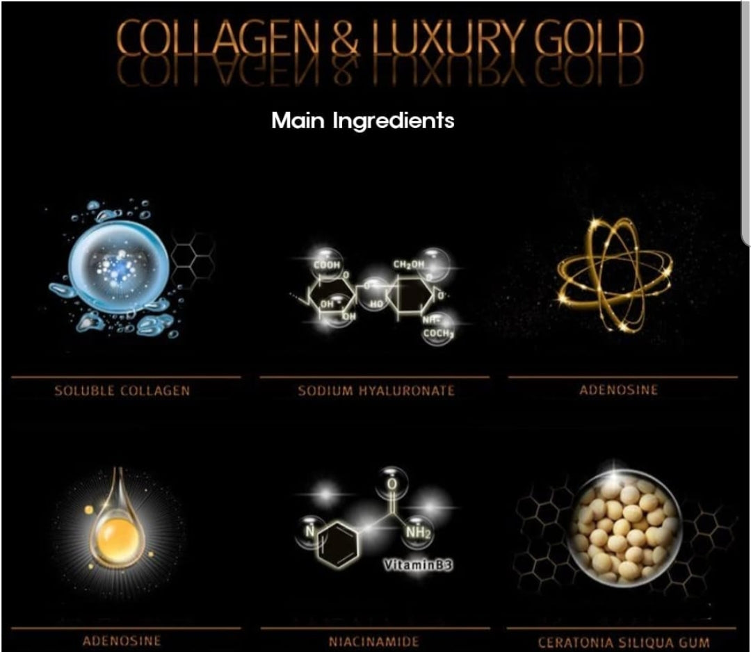 Water Soluble Collagen, Sodium Hyaluronate, Allantoin, Adenosine, Niacinamide, Hydrogenated lecithin