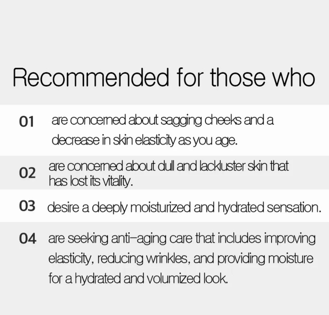 Containing active ingredients, such as Volyufilin, Collagen complex and Hydrolyzed Elastin to increase the firmness and elasticity of the skin and strengthen firmness of the skin.