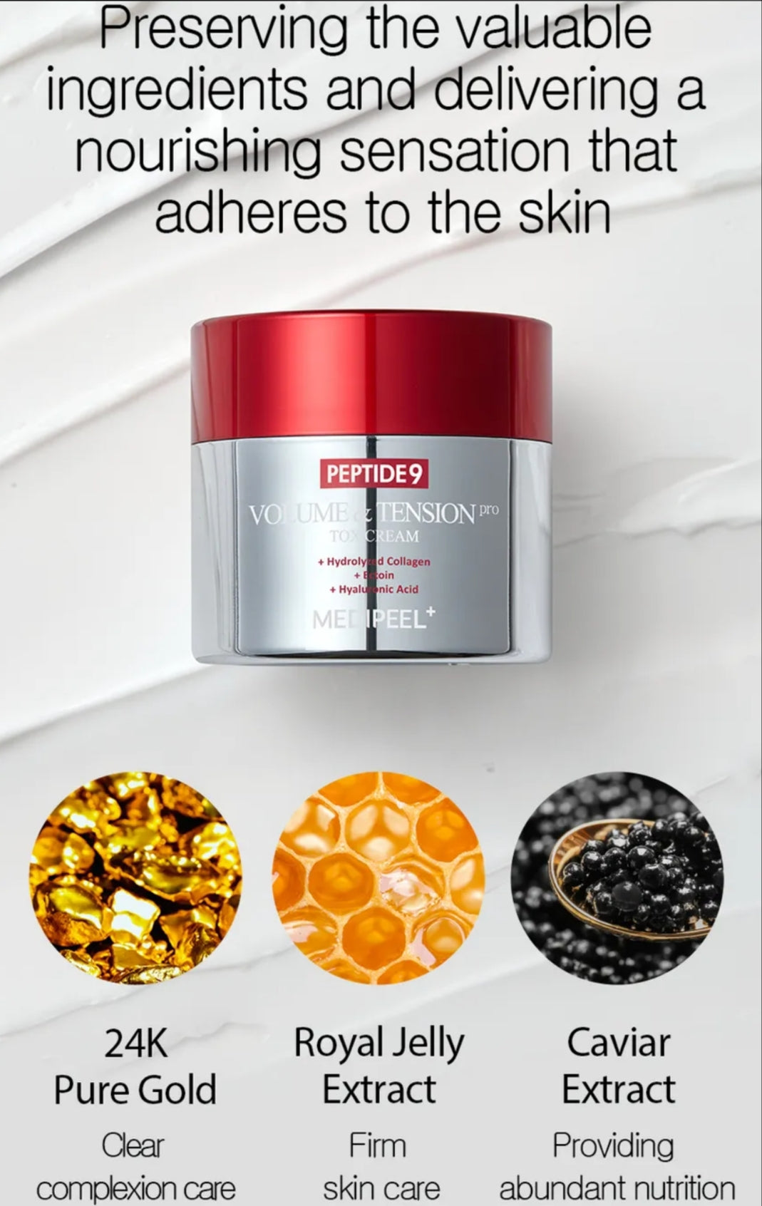 The improved formula, the updated version of Peptide 9 Volume and Tension Tox Cream