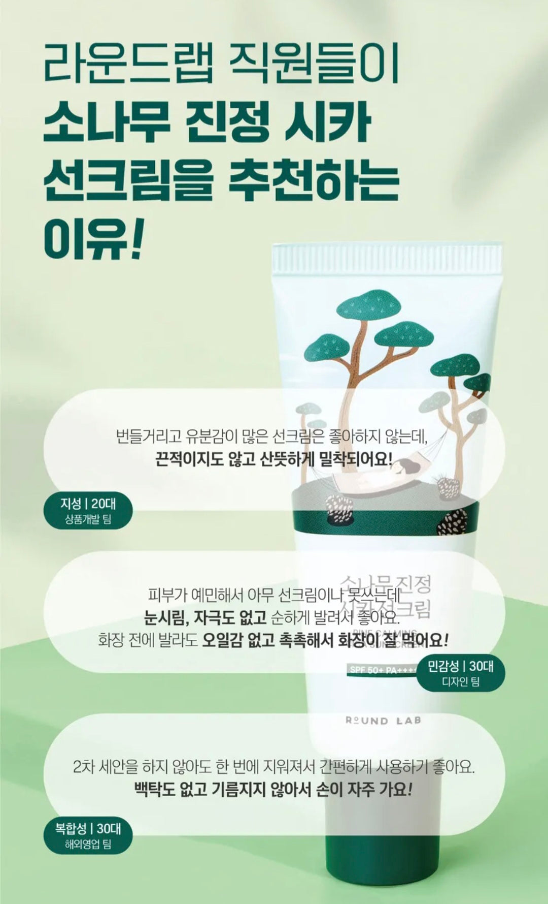 [K-beauty] Round LAB PINE CALMING CICA Sunscreen 40ml (SPF 50+/ PA++++)