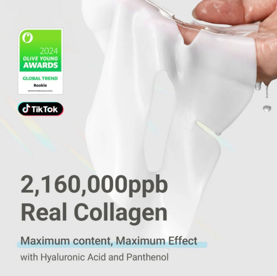 2,160,000ppb low molecular collagen absorbs deeply to support elasticity and hydration.